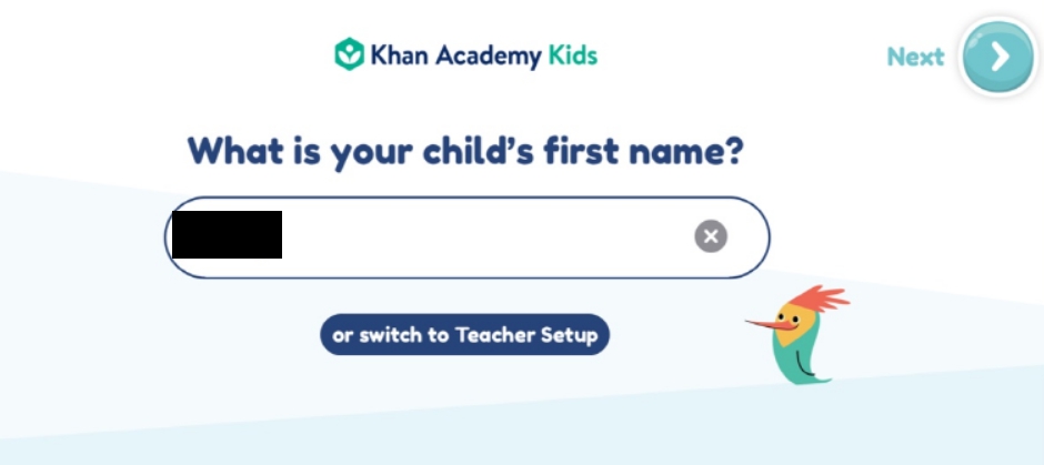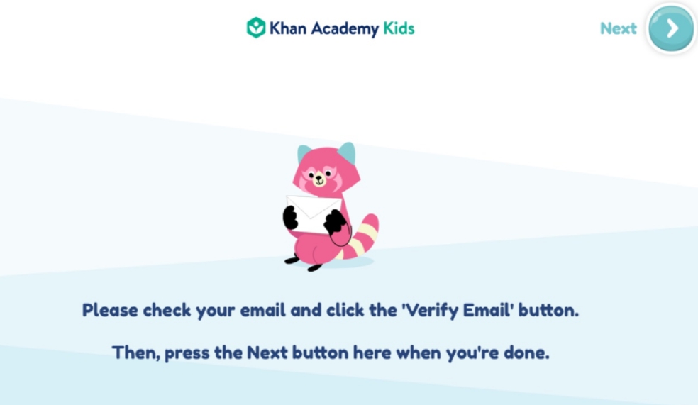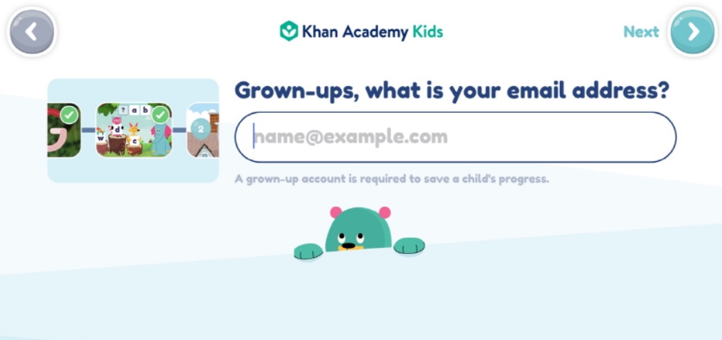 1. 태블릿에서 ‘Khan Academy Kids’를 다운받아 설치한다. 앱을 처음 실행하면 회원가입 화면이 표시된다.