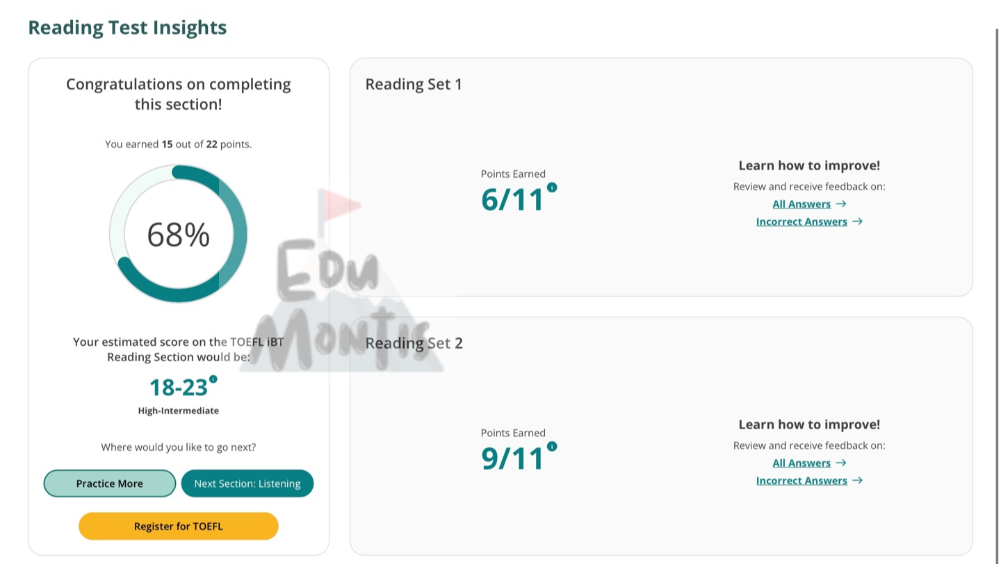 1) TOEFL iBT 토플 영역별 예상 점수 확인하기